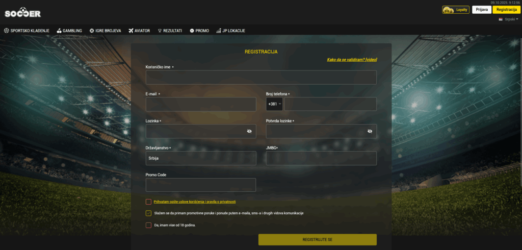 Registracija na SoccerBet